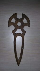 from: Bill Harrington: “Anybody have an idea what this little guy is? Leather tool maybe?”