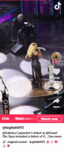 Carpenter’s appearance at the Opry and her collaboration with Dolly Parton represent an ongoing blending of genres in contemporary music, where boundaries are increasingly fluid. By incorporating country elements into her work and embracing the traditions of the Opry stage, Carpenter showed both respect for the genre’s heritage and a willingness to push creative boundaries.