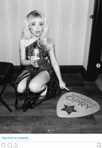 Carpenter then stepped into the spotlight, bathed in soft stage lighting, and opened her set with the heartfelt ballad “Please Please Please.” The song had recently been reimagined as a duet with country music legend Dolly Parton, whose unmistakable twang and warmth added a Southern flair to the track. The reworked version was released on Valentine’s Day as part of a deluxe edition of Carpenter’s album Short n’ Sweet, and its music video featured a playful Western-themed storyline filmed in Nashville. This connection helped bridge Carpenter’s pop roots with the country tradition honored at the Opry.