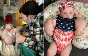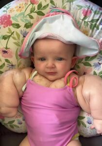 Born in Kentucky at just 33 weeks through an emergency C-section, Armani’s appearance shocked even seasoned medical professionals. Her arms, chest, and part of her neck were significantly swollen. Her skin stretched tightly over enlarged tissue, as if something unseen was growing beneath the surface. From the very beginning, it was clear this was no ordinary case.