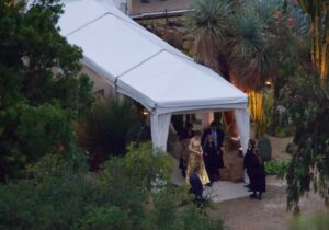 The newlyweds and the couple didn’t appear to mind the downpour and rang in the New Year with their guests.