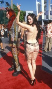 The actress famously left little to the imagination on the red carpet of the 1998 MTV Video Music Awards.