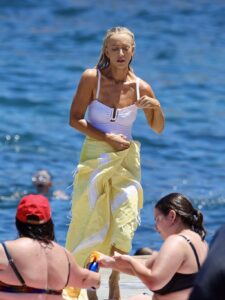 The 50-year-old star, who resides in Sydney’s eastern suburbs and is currently renting while building her dream home in Clovelly, looked relaxed and tanned at Clovelly Beach.
