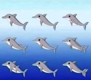 At first glance, the image appears straightforward: a group of dolphins playfully swimming in the ocean. But the calm surface hides a clever twist. Look more carefully and a different picture begins to emerge.
