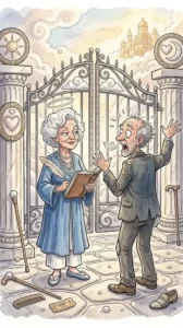 “Sorry, dear. Rules are rules. You have to spell a word correctly to enter Heaven. Otherwise, you’ll be sent to Hell.”